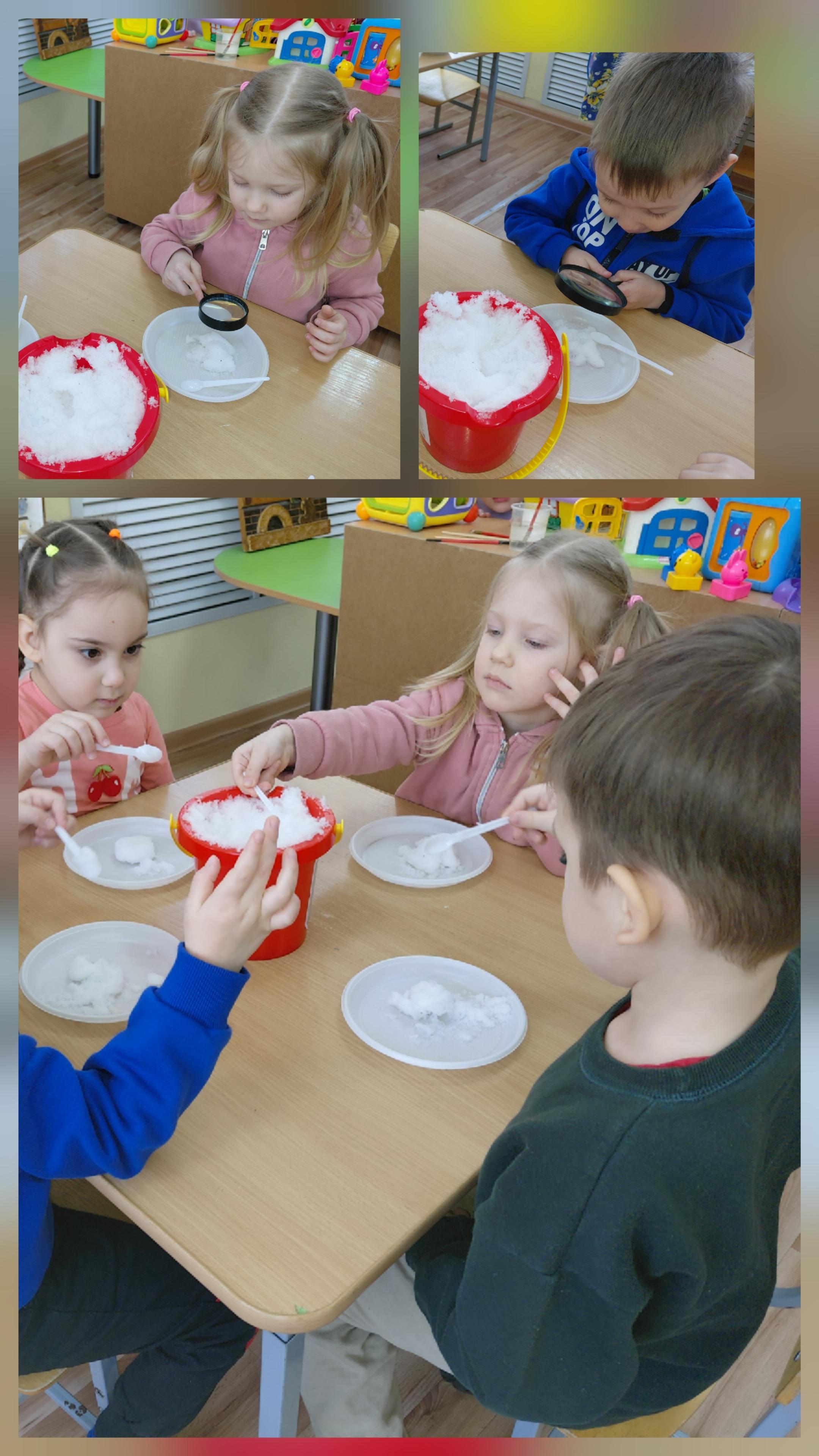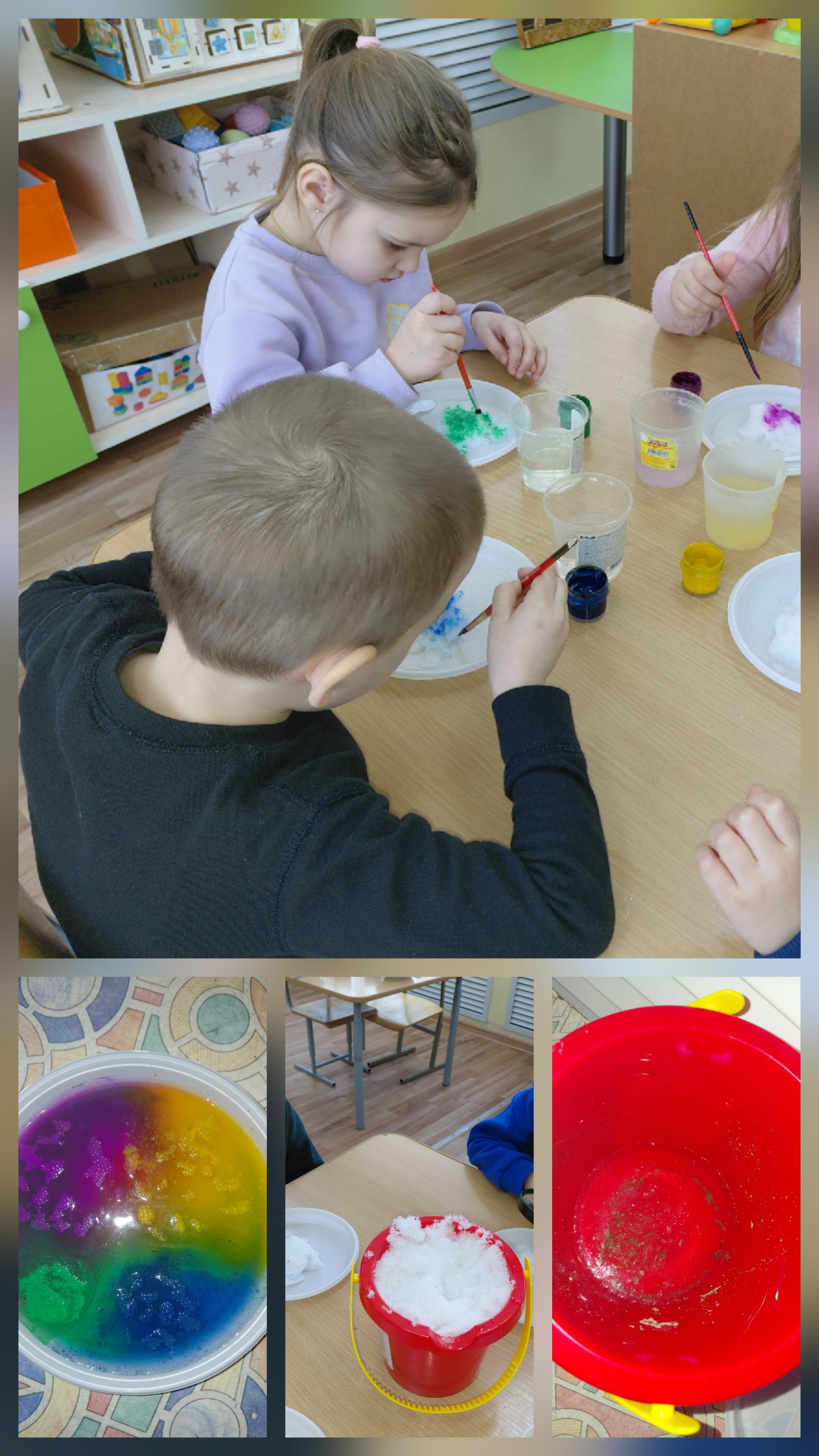 Ребята 11 группы, опытным путем узнали, как можно заморозить цветную воду и в итоге получить красивые , цветные ледяные фигуры. Под лупой рассматривали снег, покрасили его в разные цвета, и были в восторге от растаявшего цветного снега, превратившегося в радужную воду.