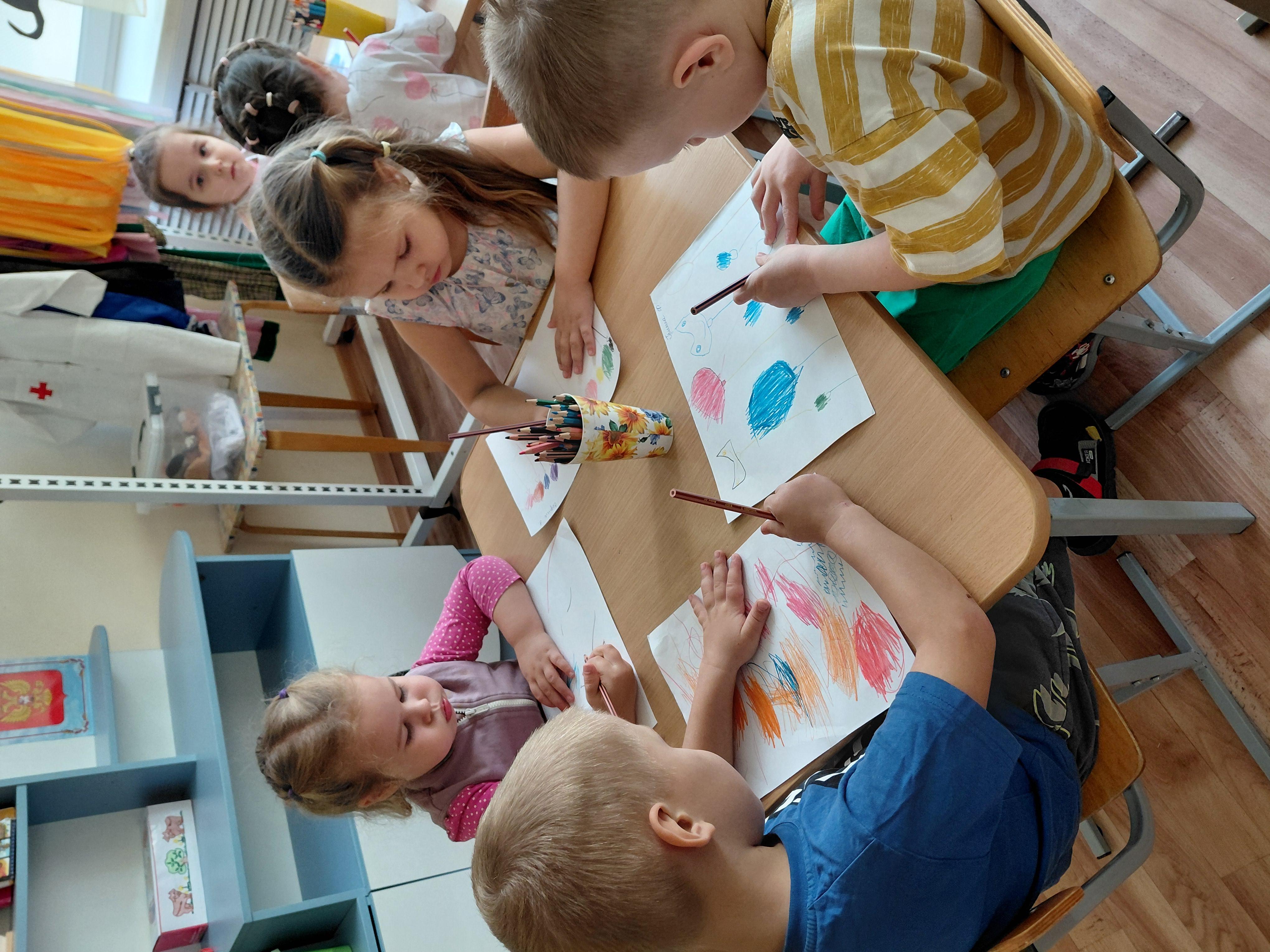 Детки радуются, ждут и готовятся к празднику. Рисуют шарики. На празднике танцуют и веселятся!