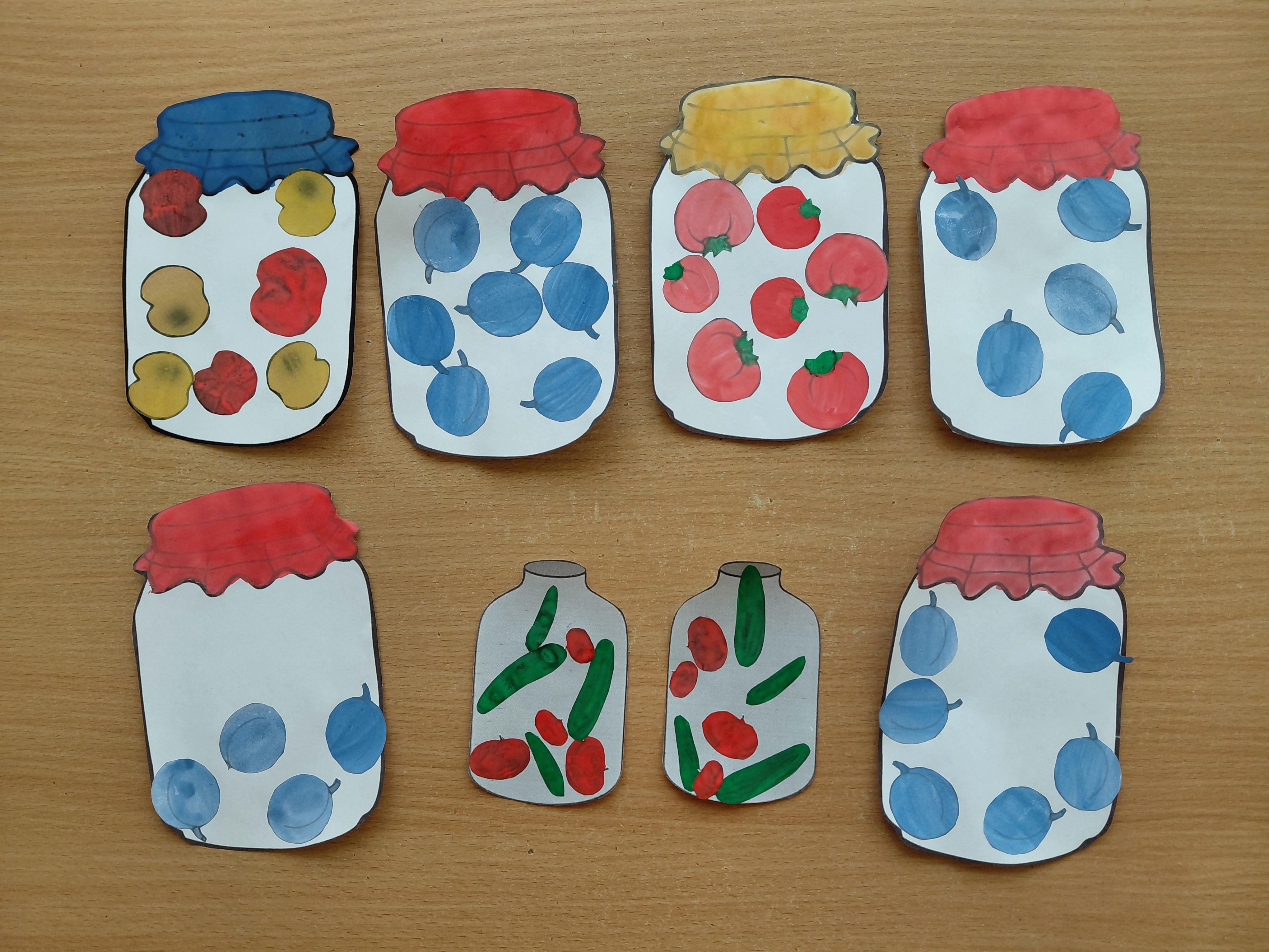 А наши ребята готовят на зиму компот, засолили помидоры и огурцы.