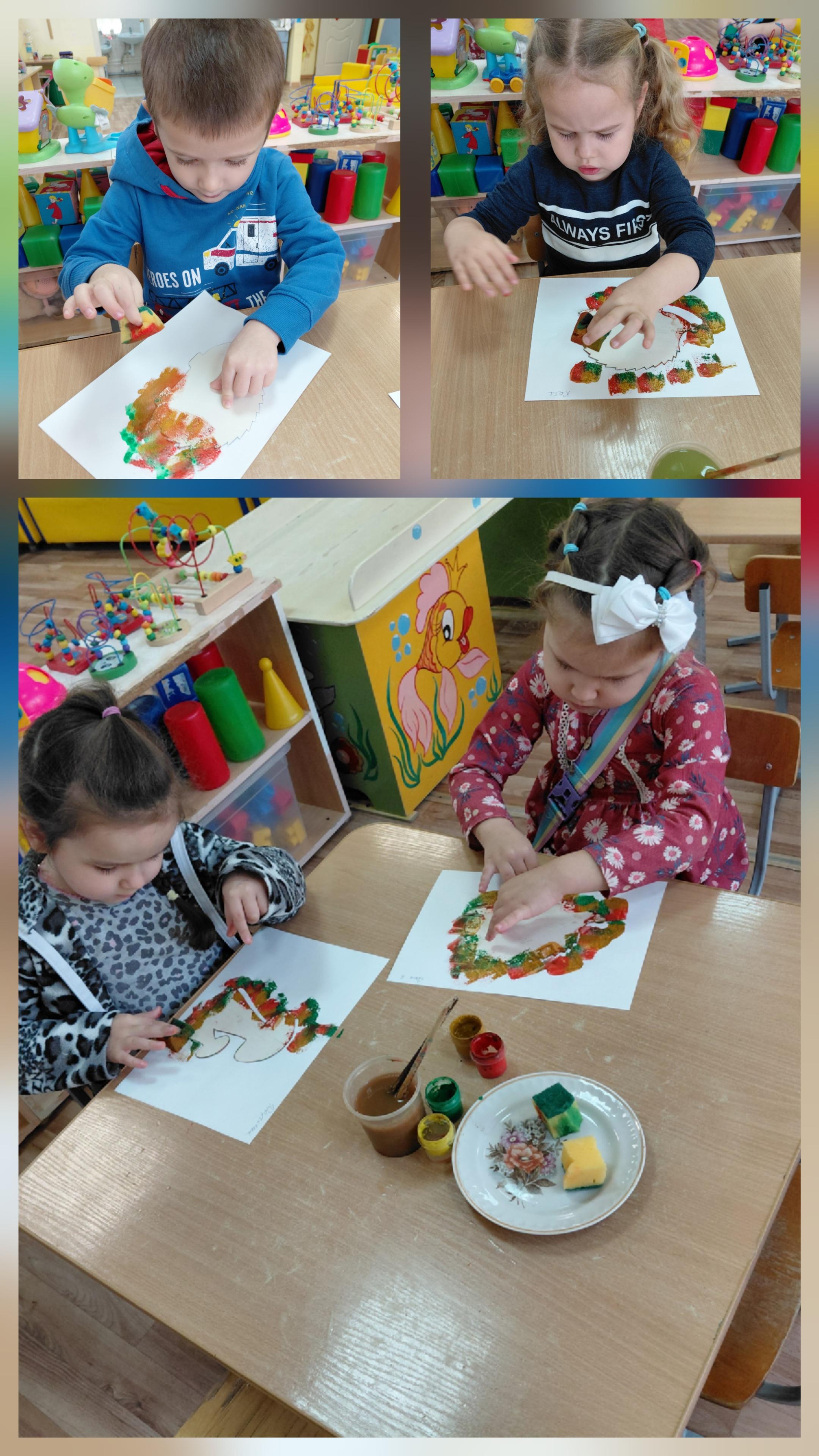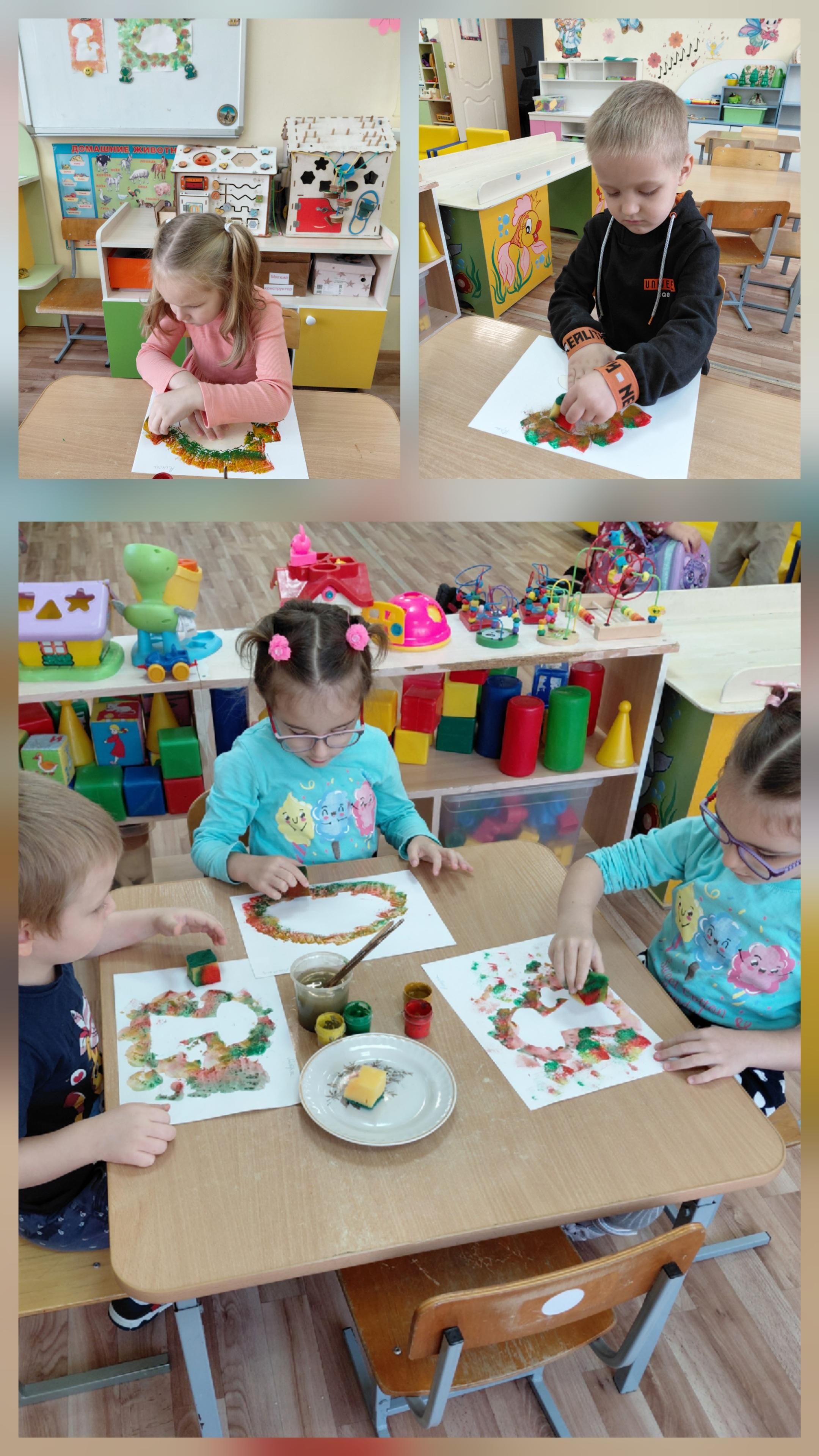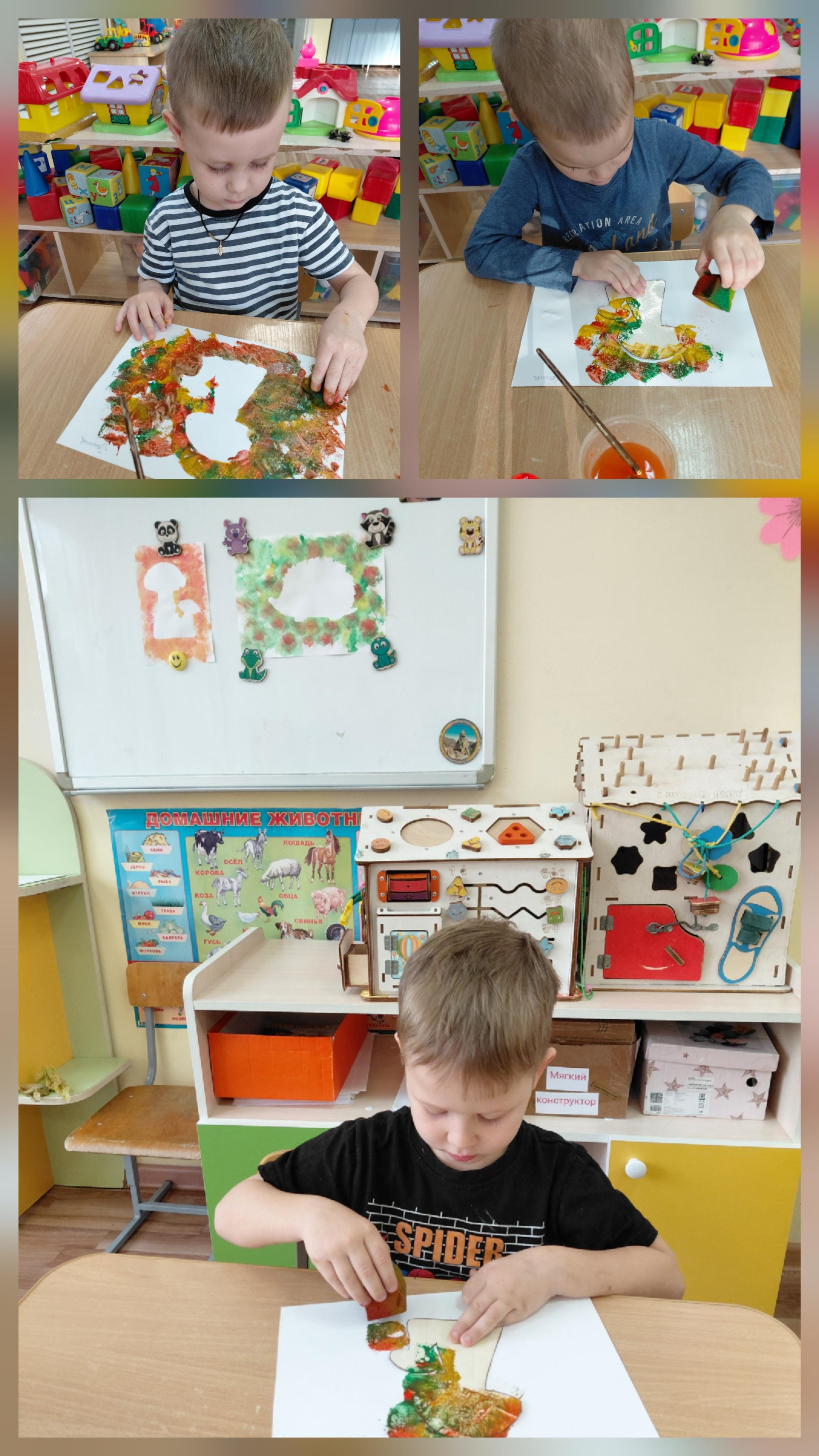 Ребята 11 группы, опробовали новую технику. Рисование губкой , печать по трафарету губкой . "Ёжики и грибочки в осенних листочках".